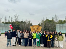 步入金沙遗址博物馆,仿若踏入历史回廊。专家老师以专业手势引导,带领同学们依文物陈列顺序将古蜀文明娓娓道来,让沉睡千年的文物“开口说话”,使古老文化重焕生机。从黄金面具到一件件器皿,同学们认真聆听专家的专业讲解,一边学习行业专家的讲解技巧,一边悉心钻研自己感兴趣的历史知识并转化为通俗讲解词,同学们直观的了解了古蜀文明的辉煌和深度,体会到古蜀人民的智慧、勇气和坚韧不拔的精神。
